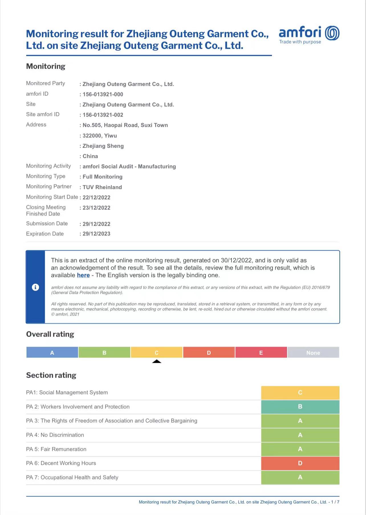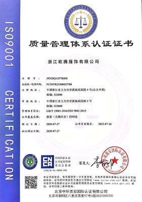 浙江歐騰服飾有限公司位于世界小商品之都-義烏。創(chuàng)立于2015年,是一家專業(yè)生產(chǎn)無縫針織運(yùn)動服飾和內(nèi)衣的工貿(mào)一體企業(yè),擁有自主出口權(quán)。 工廠的占地面積約16000平方米 ,引進(jìn)了大型圣東尼、高騰等多種先進(jìn)的制衣設(shè)備300余臺。月產(chǎn)能可達(dá)90萬件。 歐騰服飾每年投入近百萬資金打樣開發(fā)新產(chǎn)品,有著一支高素質(zhì)設(shè)計(jì)、技術(shù)員工隊(duì)伍。工廠先后通過了ISO 9001質(zhì)量管理體系認(rèn)證、BSCI認(rèn)證、GRS認(rèn)證、OEKO-TEX國際生態(tài)紡織品認(rèn)證等多項(xiàng)專利檢測報(bào)告??商峁㎡EM&ODM服務(wù)。歐騰服飾以一套完整、科學(xué)的質(zhì)量管理體系,生產(chǎn)的服裝從原材料紗線到成衣,質(zhì)量完全能夠滿足國內(nèi)、國際質(zhì)量要求。獲得了客戶一致好評。工廠先后獲得省科技型企業(yè)、國家高新企業(yè)、義烏市誠信講信用單位、規(guī)上企業(yè)、信用AAA級等榮譽(yù)。